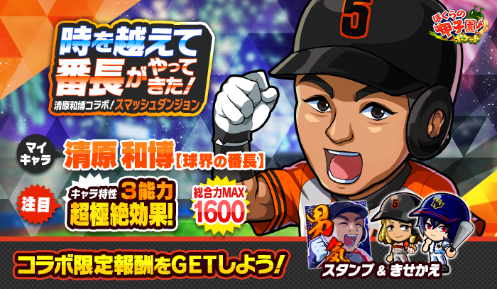 株式会社カヤック(本社:神奈川県鎌倉市、代表取締役CEO:柳澤大輔、東証グロース:3904、以下「カヤック」)は、現在好評配信中の共闘スポーツRPG『ぼくらの甲子園!ポケット』(iOS/Android端末向け)において、新イベント「清原和博コラボ!スマッシュダンジョン~時を越えて球界の番長がやってきた!~」を8月23日(火)より開催いたします。