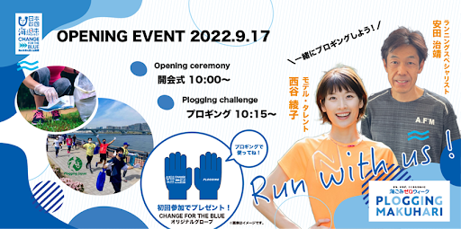CHANGE FOR THE BLUE 千葉県実行委員会(事務局:千葉テレビ放送内)は、2022年9月17日(土)から2022年9月25日(日)秋の海ごみゼロウィークに、千葉県幕張にてプロギングイベント「海ごみゼロウィークPLOGGING MAKUHARI」(以下、本イベント)を開催いたします。本イベントは、日本財団が推進する海洋ごみ対策プロジェクト「海と日本プロジェクト・CHANGE FOR THE BLUE」の一環で開催するものです。