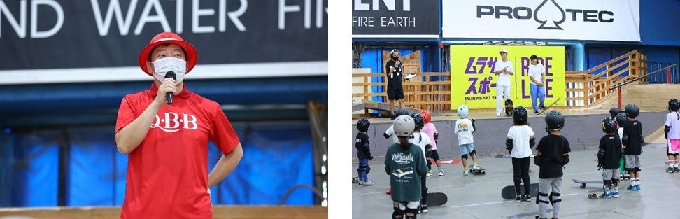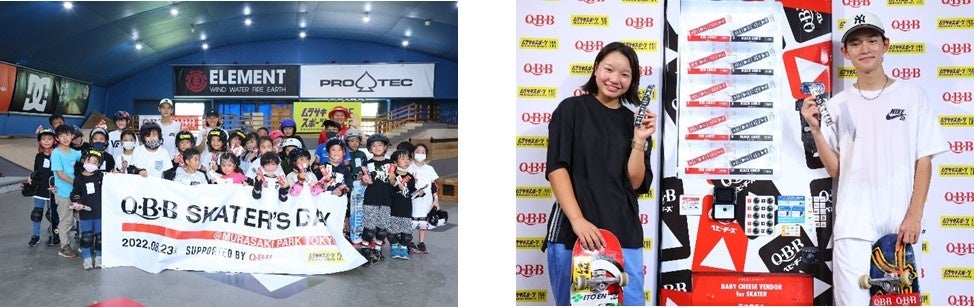 夢中で頑張る人を応援する六甲バター株式会社(本社:兵庫県神戸市、代表取締役社長:塚本 浩康)は、2022年8月23日(火)に都内最大級のスケートパーク施設「ムラサキパーク東京」にて「QBB SKATER’S DAY」を開催いたしました。ゲストとしてQBBベビーチーズブランドアンバサダーでもあるプロスケートボーダーの白井空良選手と西矢椛選手も来場し、スケートボード未経験の小学生向けスクールにゲスト講師として指導に参加したり、来場者の方々と一緒に滑ったりと交流を深めました。
