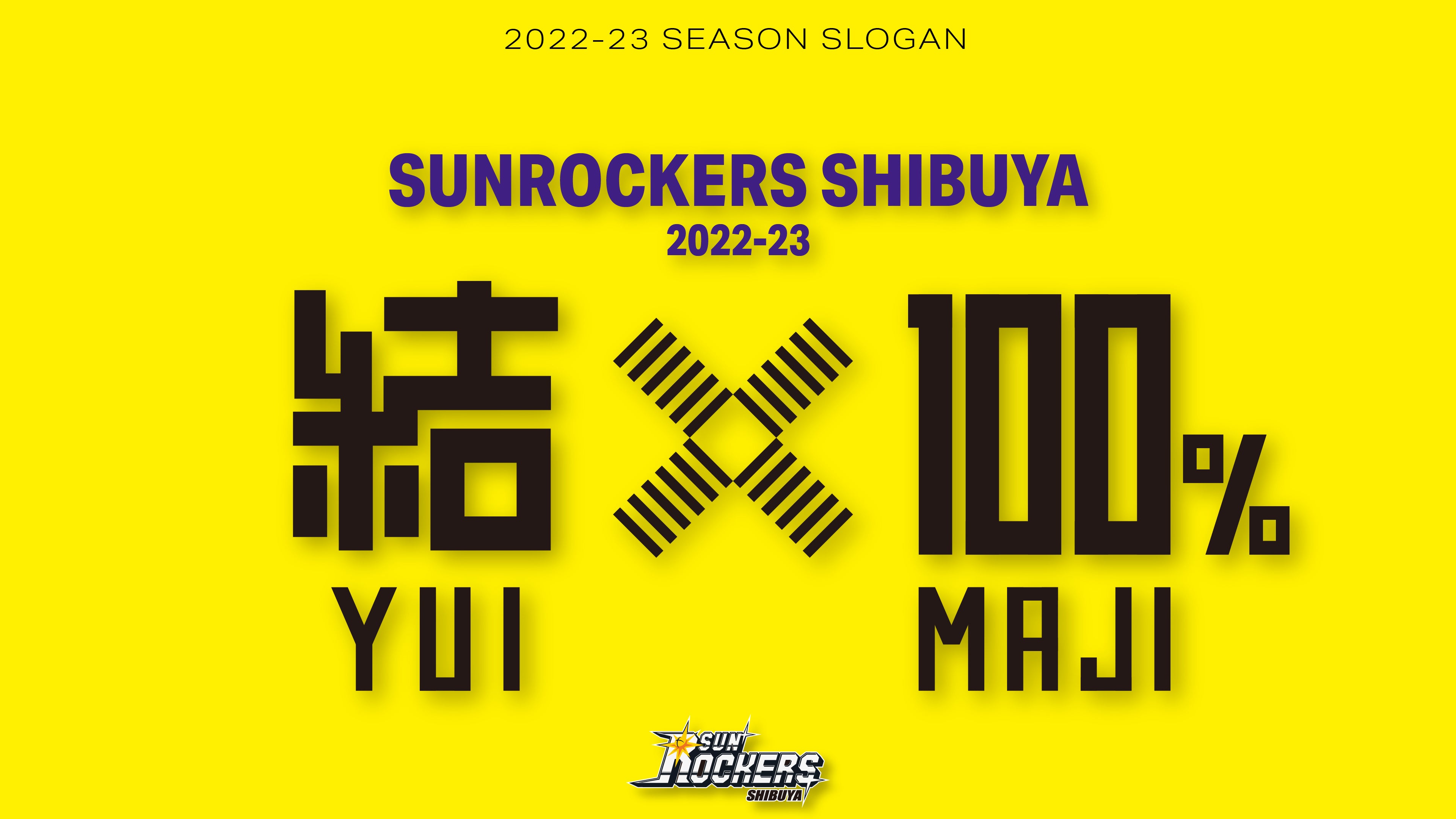 今シーズンもこれまでと変わらず、数シーズンに渡り多くの選手・スタッフによって積み上げてきた「結」の精神を継続します。加えて、昨シーズン終盤に見せたサンロッカーズ渋谷の文化である粘り強く、観る人の心を揺るがすバスケットボールを開幕から全試合・毎ポゼッション体現する決意を持って、来たる2022-23シーズンは「結×100%(YUI MAJI)」を掲げます。