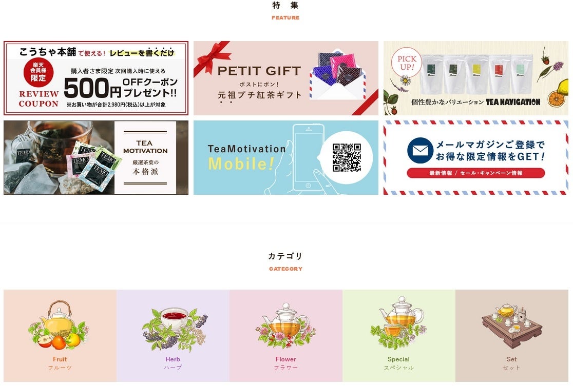 こうちゃ本舗はオリジナルブランド「TEA MOTIVATION」、「TEA NAVIGATION」を販売する通販サイトです。