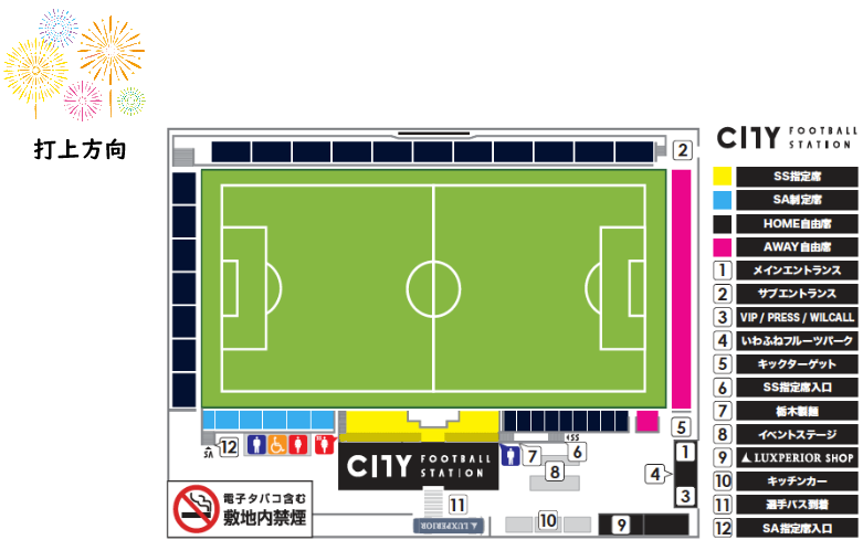 ※花火はバックスタンド側の上空に打ち上げ予定です。