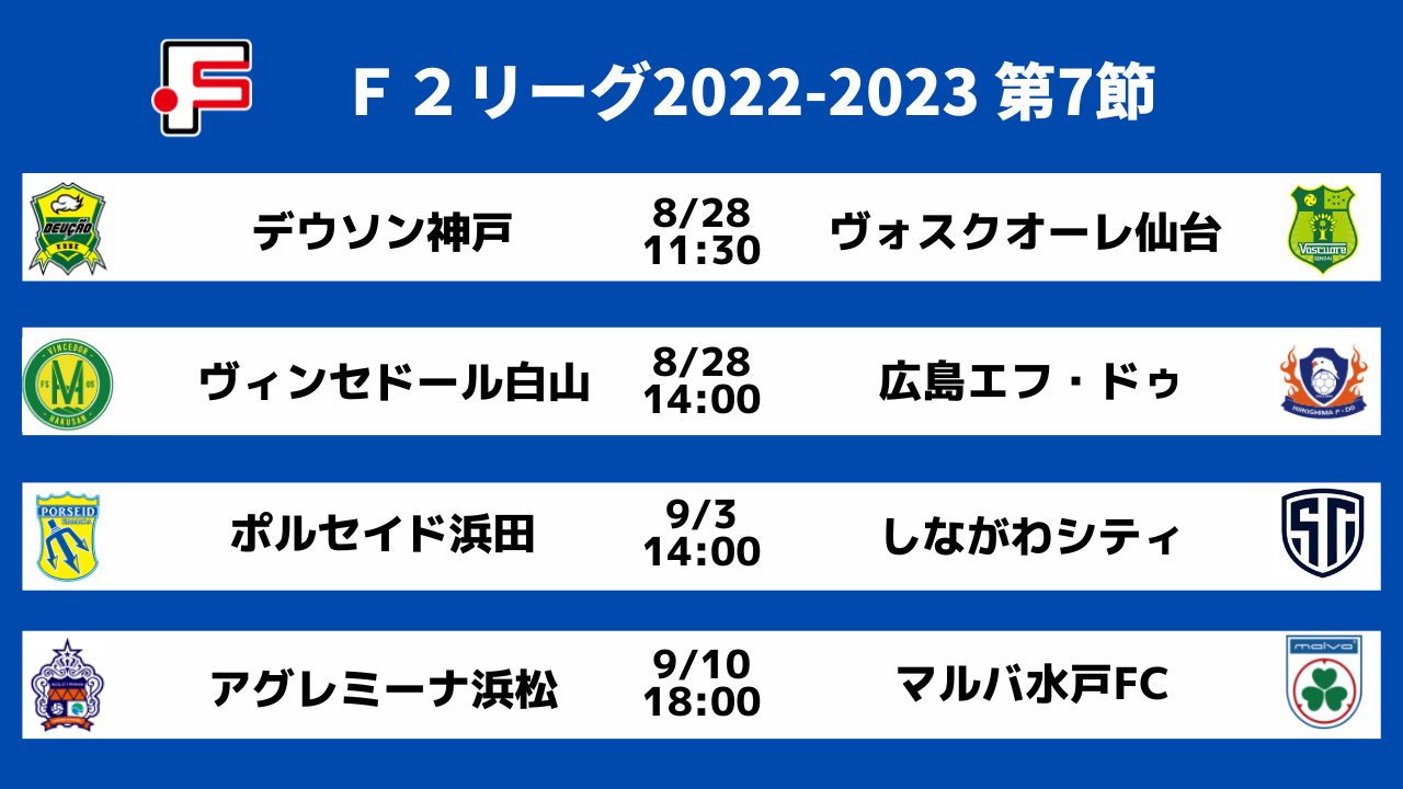 8月28日(日)に開催するFリーグ2022-2023 ディビジョン2 第7節の2試合を以下の通り、ELEVENにてライブ配信いたします!全試合を無料でご視聴いただけますので、ELEVENのアプリをダウンロードいただき、ぜひご視聴ください!