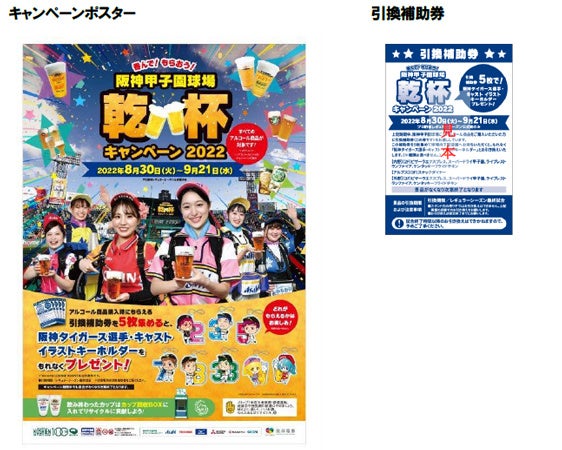 阪神電気鉄道株式会社(本社:大阪市福島区、社長:秦雅夫)が運営する阪神甲子園球場では、2022年8月30日(火)~9月21日(水)の期間中に開催されるJERA セ・リーグ公式戦において、アルコール商品をお買い上げの方に景品をプレゼントする、「呑んで!もらおう!乾杯キャンペーン」を開催いたします。阪神タイガースの勝利を願って“心の中”で乾杯しよう!