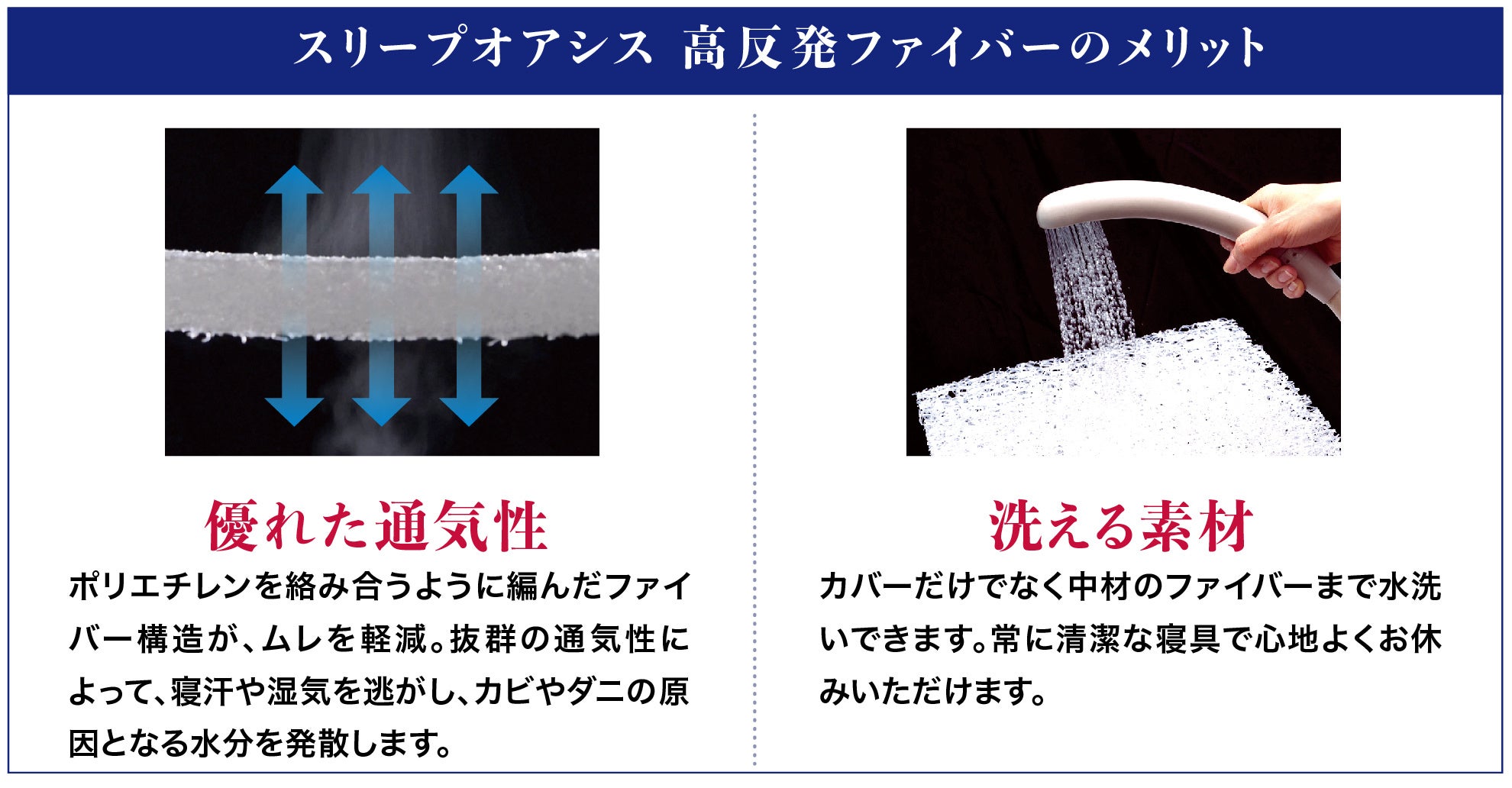 ・優れた弾力性で、腰部の沈み込みを防ぎ、自然な寝姿勢と寝返りをサポートして疲労を軽減