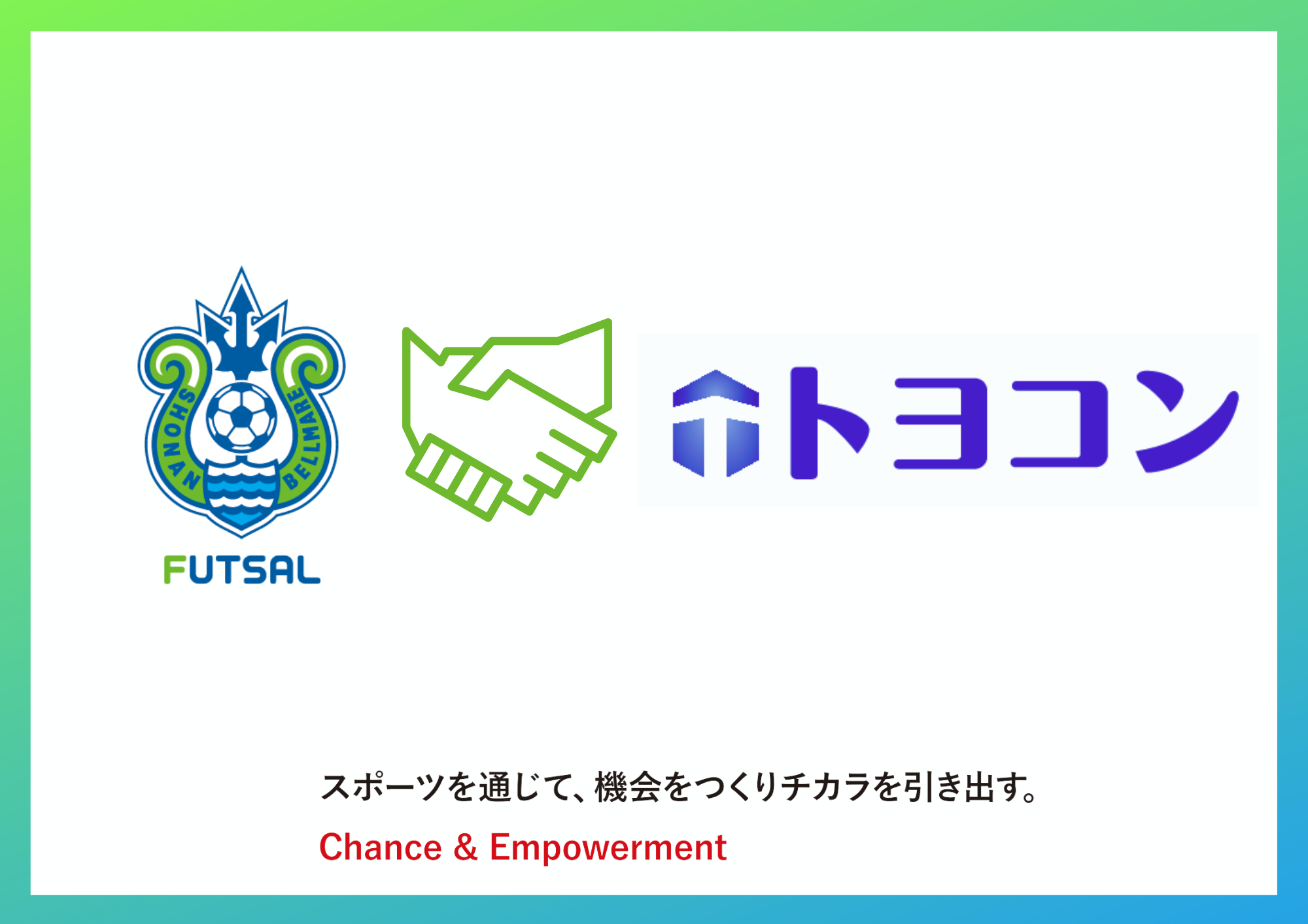 この度、株式会社トヨコン様と、株式会社湘南ベルマーレフットサルクラブの二者間による、【Chance&Empowerment パートナー】≪スポーツ振興・普及・発展、及び SDGs