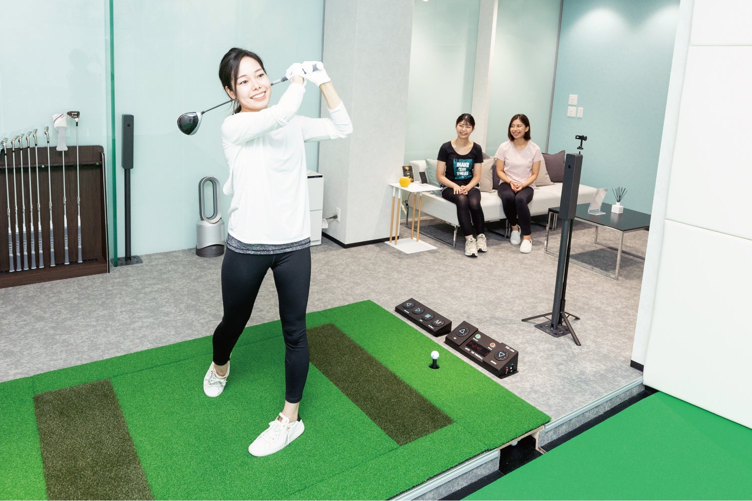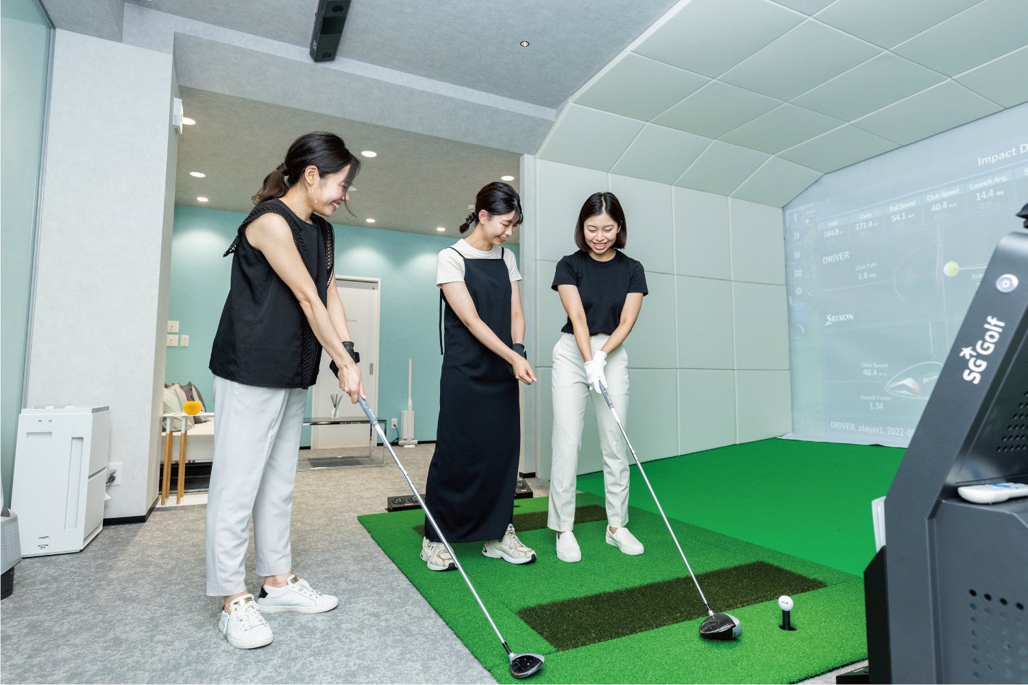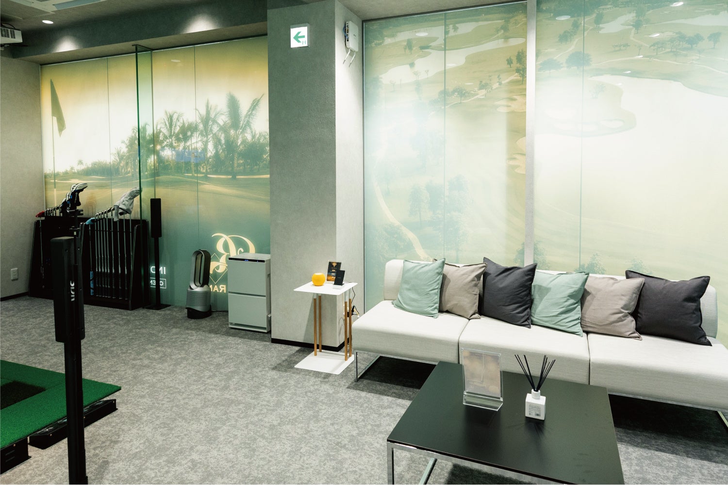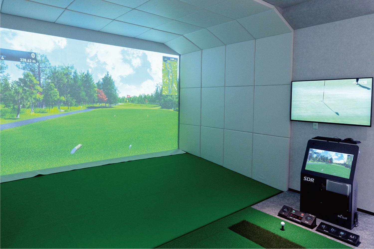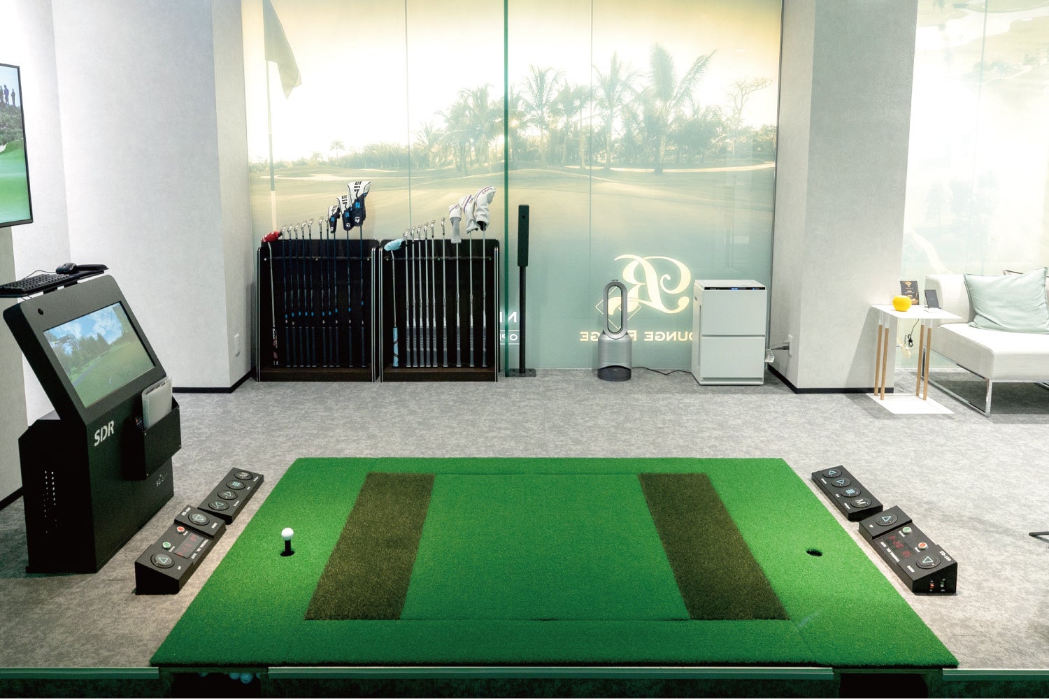 Lounge Range 福島では、最新・最高峰のゴルフシミュレーター(ダンロップ/SDR)を導入し、人目を気にすることなくリラックスできる環境で、ゴルフを楽しめるラグジュアリーな完全個室のラウンジを併設しております。