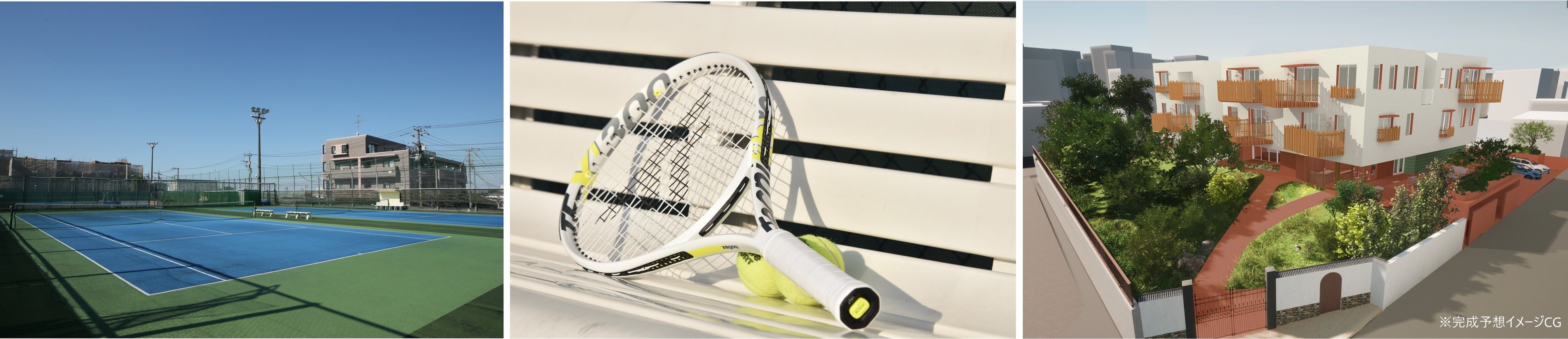 来年1月に完成する新施設は3階建てで、1階にはクラブハウスやラケット&ストリングスショップなどテニスに関連したスペースのほかに、カフェもオープン予定。建物の周りには緑豊かな「庭」が広がり、スポーツに、カフェに、訪れる人にとって”小さな幸せ”を感じていただける、緑あふれる空間が誕生いたします。
