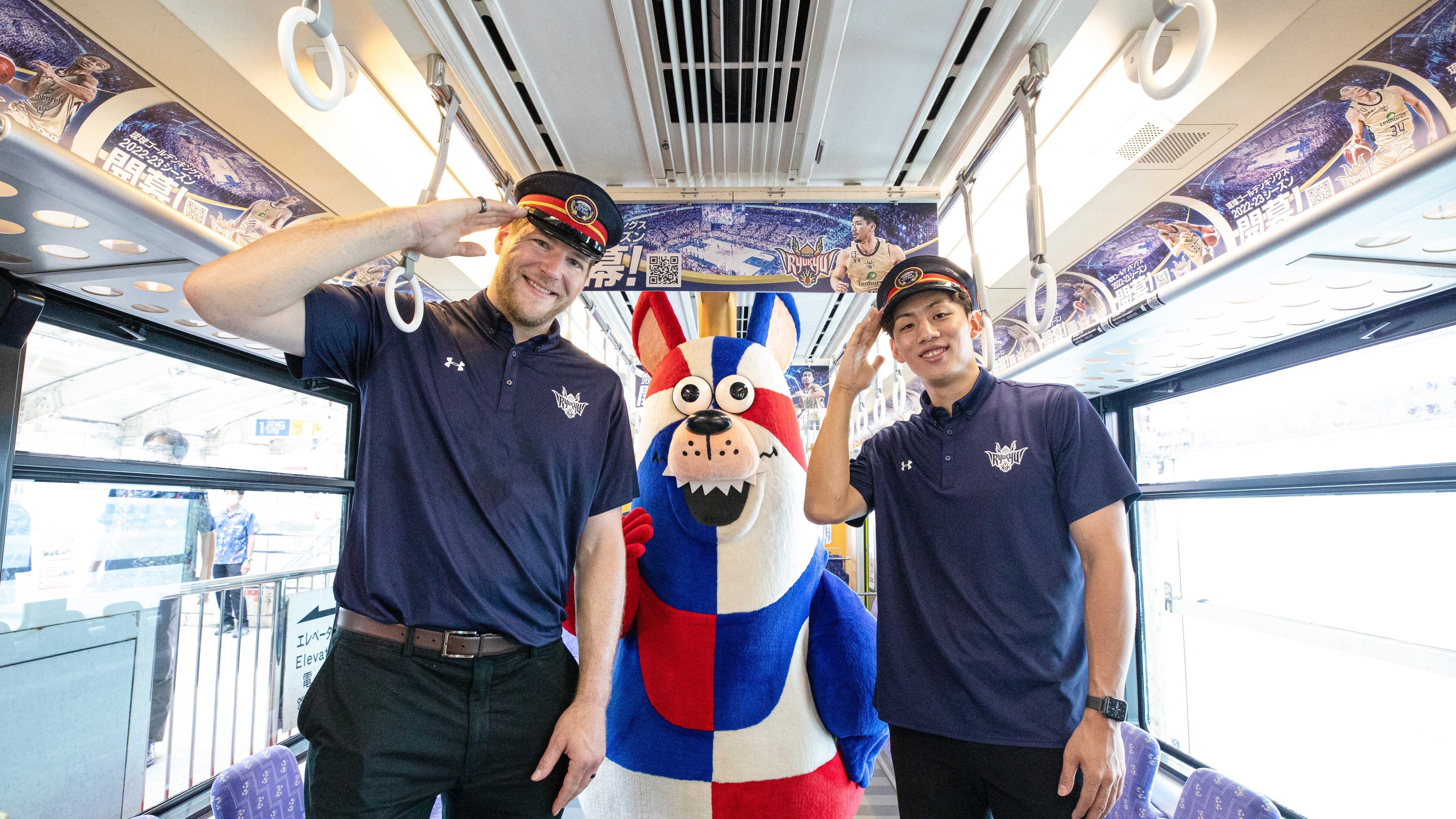 本日は沖縄県民の皆様に愛されるこのモノレールに、私たちキングスの広告を掲載していただけるということで、私たちもこのモノレールの様に沖縄県民の皆様に愛されるチームになれるよう頑張っていきたいと思います。そして、リーグ優勝という結果を持って、もっと沖縄県の皆さんを元気に出来る様、頑張っていきたいと思いますので、今後とも応援をよろしくお願いします。