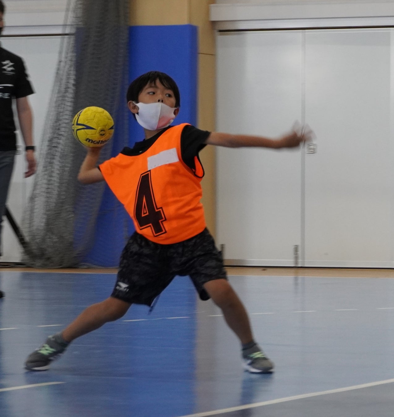 1)「ジークスター東京」の選手とハンドボールを体験しよう