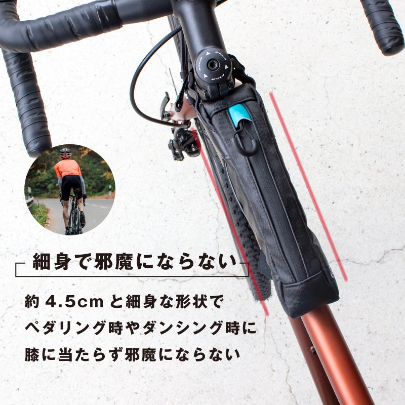エアロ形状でスッキリとしたトップチューブバッグはどんな自転車にもマッチ。