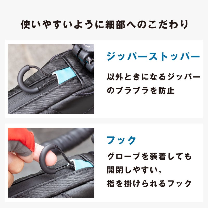 汚れに強く弾力性、耐久性がありタフなので、とても実用的なトップチューブバッグです。