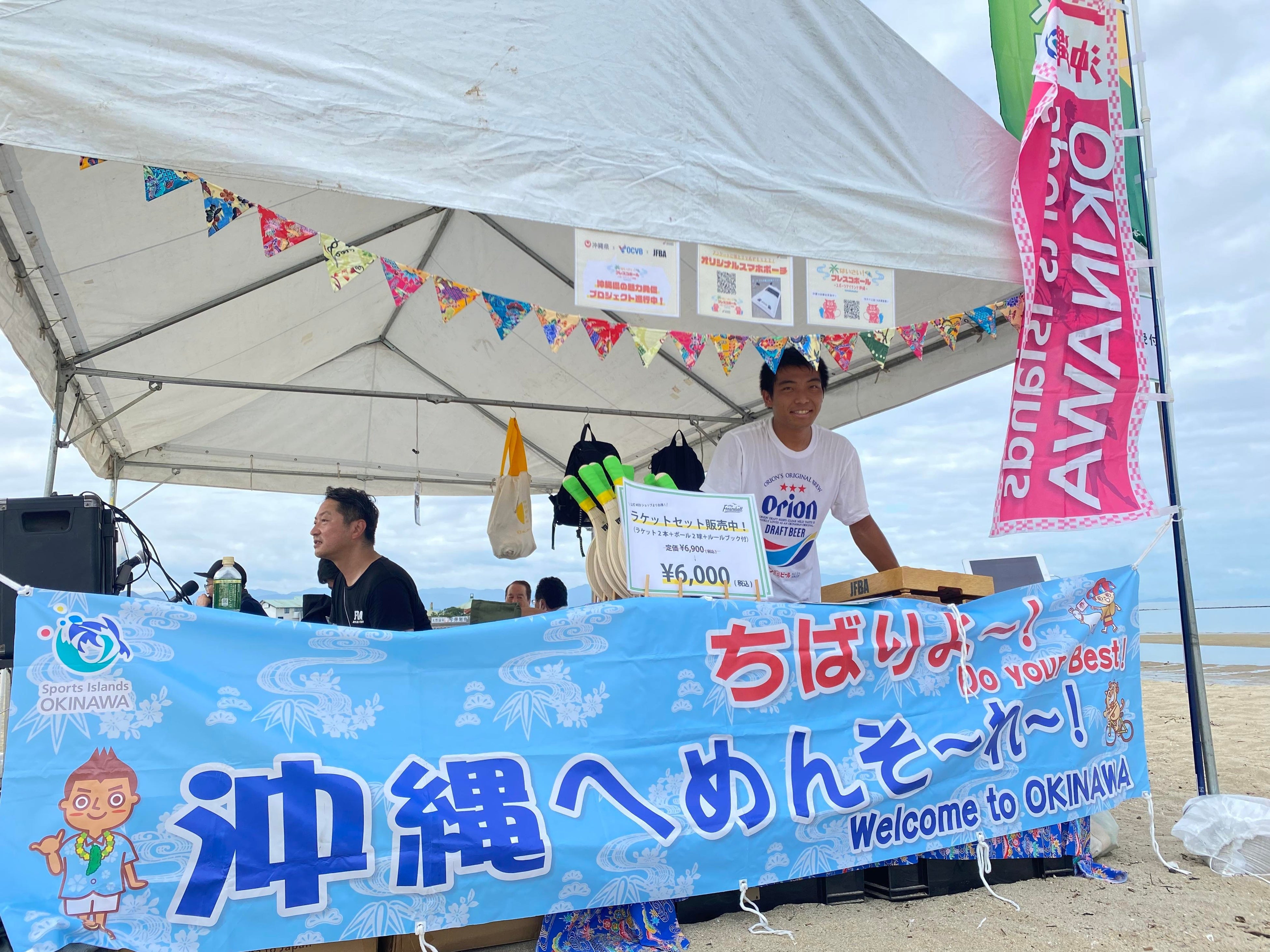 会場となるトロピカルビーチは「沖縄フレスコボールキャンプ2021」の会場でもあり、白砂と透き通った海のコントラストが美しく、フレスコボールを楽しむには絶好のロケーション。旅行先でのアクティビティとしても、ぜひ参加してみませんか?もちろん、県内の方も大歓迎です。体験者には、もれなくオリジナルステッカー&ポーチをプレゼント!