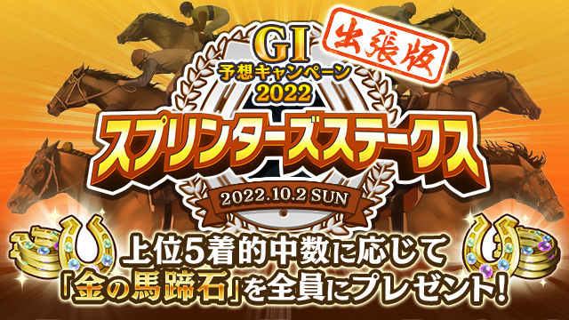 2022年10月1日(土)に行う決勝大会オンラインライブにて、2022年10月2日(日)に行われるGIレース「スプリンターズステークス」の5位までに入賞する馬を生放送中に全員で予想する「出張版!GI予想キャンペーン みんなでスプリンターズステークス予想」を開催します。