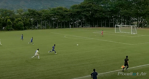 AI追随映像とパノラマ映像を同時に撮影しており、通常のビデオカメラでは難しい上からの俯瞰や逆サイド側などの視点からチームの映像分析をすることができます。
