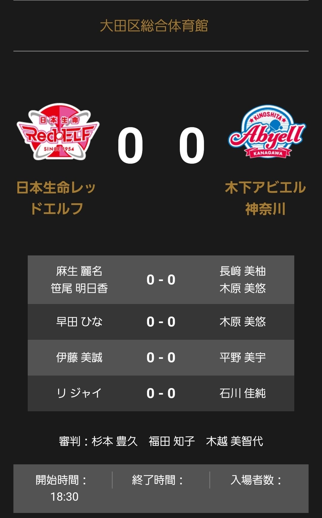 ホームプレスリリース ノジマTリーグ 2022-2023シーズン 公式戦 9月10日開催 日本生命レッドエルフvs木下アビエル神奈川 開幕戦オーダー発表 2022年09月10日 19時08分 公開|スポーツマニア編集部プレスリリース 一般社団法人Tリーグのプレスリリース 9月10日(土)18:30試合開始 日本生命レッドエルフ vs 木下アビエル神奈川 会場:東京・大田区総合体育館