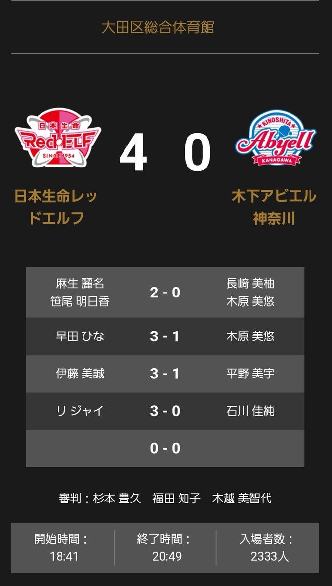 開幕戦は4-0で日本生命レッドエルフが木下アビエル神奈川に勝利しました。
