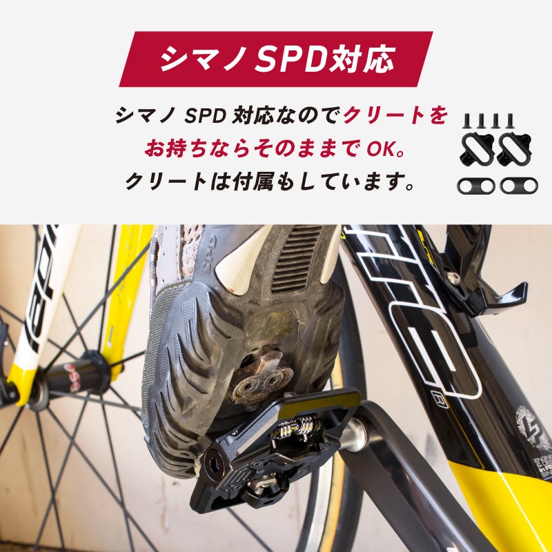 シマノSPD対応なのでクリートをお持ちならそのままでOK。
