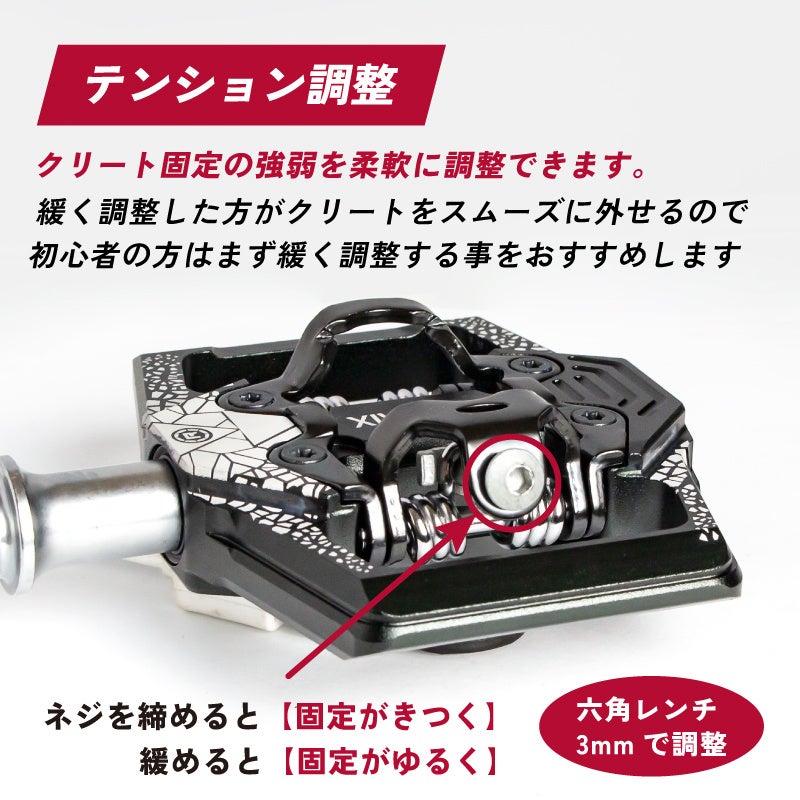 クリート固定の強弱を柔軟に調整できます。