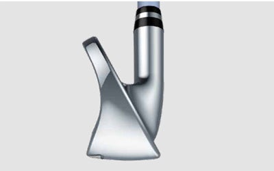 トップの防止のため、ボールの下半分にフェースが接地しやすいようリーディングエッジ(フェースとソールの境界線)を下げています。また、ソールバック側を逃がして、ダフリを防止する形状にしています。