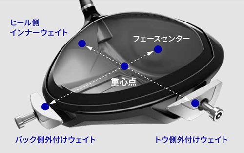 重心点を中心に、合計約25gのウェイトをトゥ、バック、ヒールの3点に最適に配置する独自の「COUNTERWEIGHT SYSTEM」を搭載したことで、ルール限界クラスの横慣性モーメント5,570g・cm²を実現しました。打点がブレても“曲がりにくい”“ボール初速が落ちない”圧倒的な飛びと直進性を生み出します。