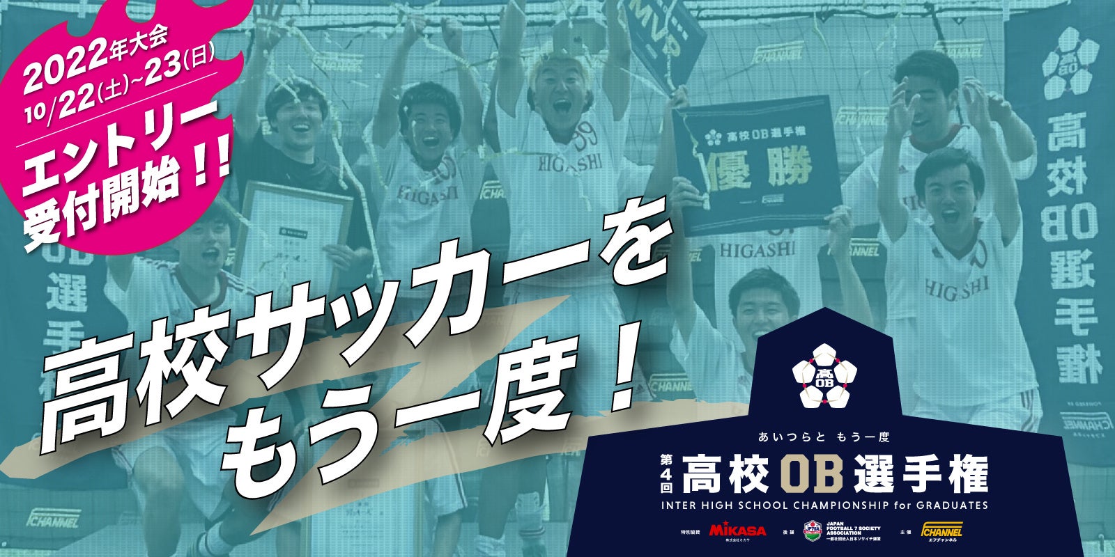 共にソサイチを盛り上げる、当連盟のパートナー「エフチャンネル」主催の『高校OB選手権』の後援をさせていただくことになりました。