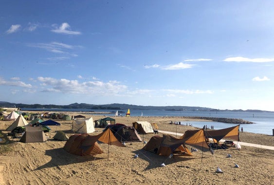 砂浜が目の前に広がるエリアで毎年大人気のキャンプサイト。