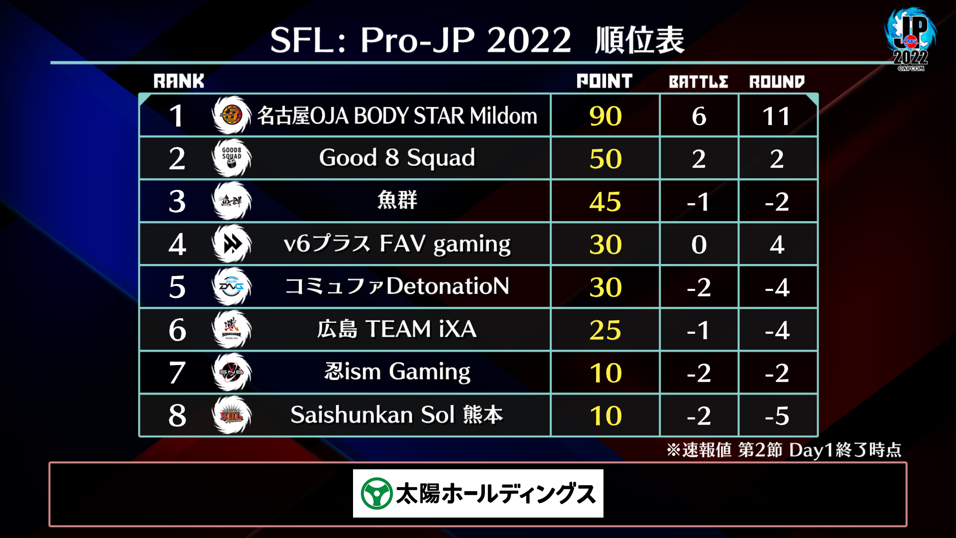 昨日、9月13日(火)に行われた「ストリートファイターリーグ: Pro-JP 2022」第2節Day1の試合速報をお知らせいたします。