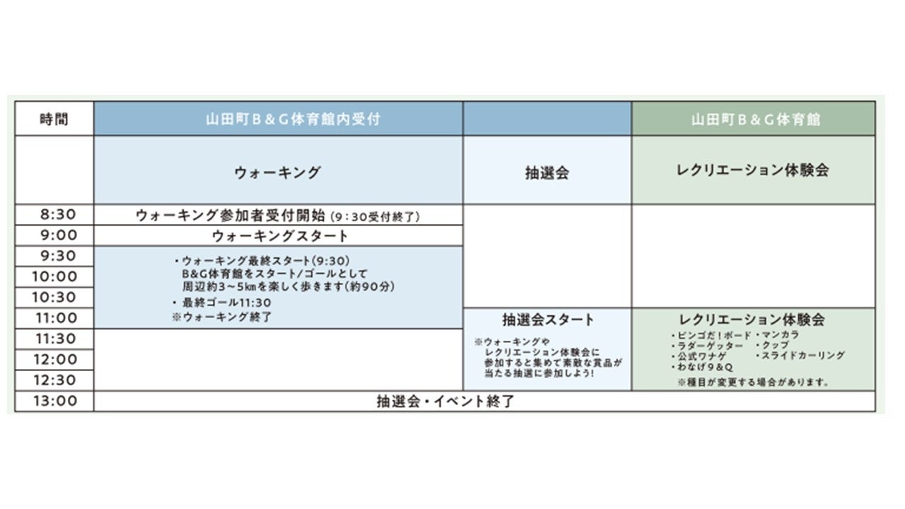 <内 容>・ウオーキング・レクリエーション体験会・抽選会