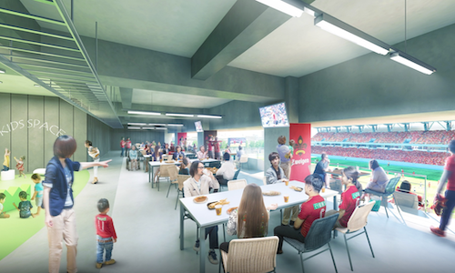 また、さまざまなラウンジやバラエティーに富んだシ ート、⼩さなお⼦様づれでも快適に観戦できる環境が整備され、まさに⼈々の交流の場になっていく未来が⽬に浮かびます。