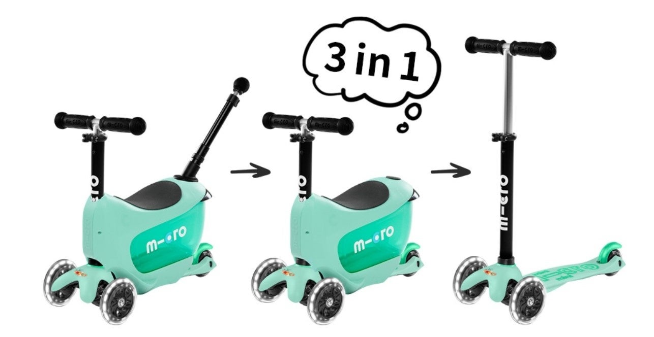 1.5歳から乗れるMini2goはまだバランス感覚がまだ身についていないお子様でも、保護者が支えることにできるアシストバー付きで安心してお乗りいただけます。地面を蹴りながら進み、自然とバランス感覚を身に着け、一人でも乗れるようになったらキックボードとして変身可能。耐荷重20kgまで乗れるので、キックボードとしてもサドル付きの三輪車としても兄妹や姉妹で使う事ができます。また、収納ボックスもついており、おもちゃやちょっとした荷物等を入れる事もできます。