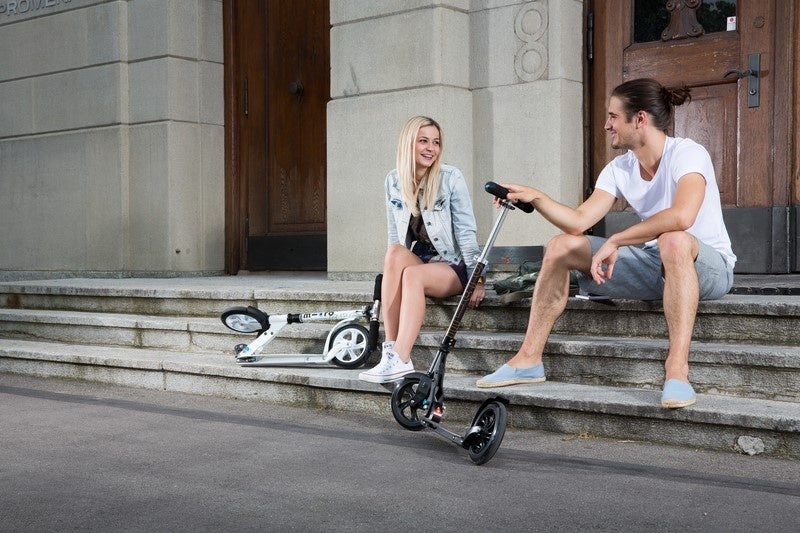 1999年、スイスで創業したマイクロモビリティシステムズ社は、現在「キックボード」と名づけられている3輪の「K2キックボード」を世界で初めて開発しました。 多くのコピー商品、類似製品が発売されるなかでもマイクロは、革新的なデザインと技術力、たゆまぬ製品開発力の基盤を認められてドイツデザイン協会による賞を受賞、世界83カ国に販売を拡大するなど大きな成功を収めて、著名な世界中のセレブリティにも愛されるキックボードNo1ブランドに成長しました。