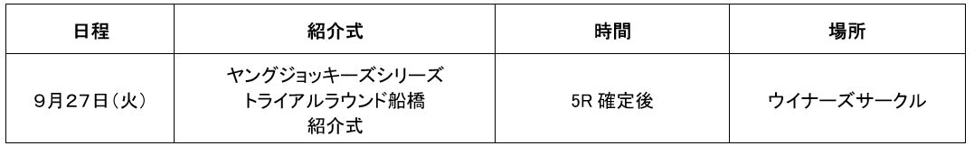 ※船橋競馬対象レース:9月27日(火)ヤングジョッキーズシリーズTR【船橋】全2戦
