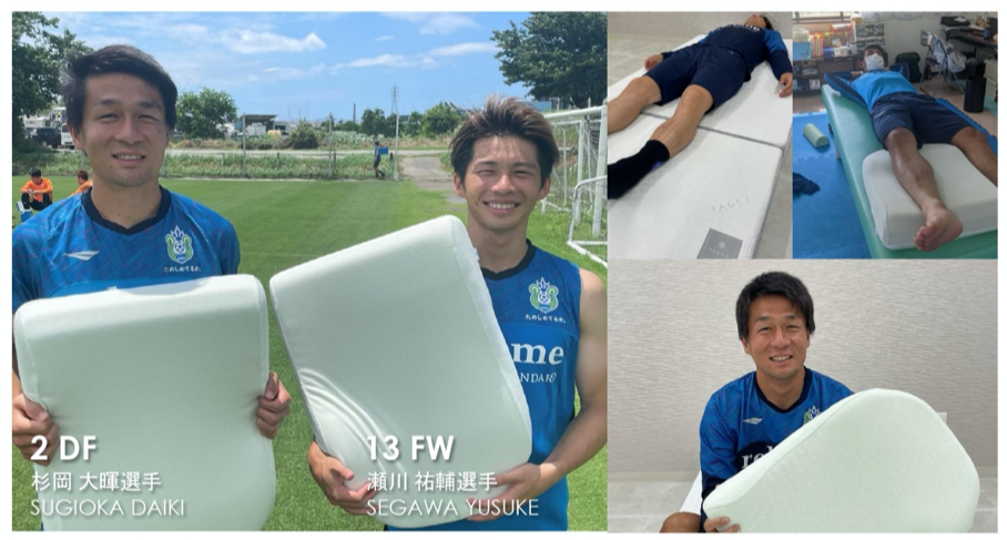 イノアック様からはアスリートにとって睡眠環境の整備や改善はパフォーマンスの向上に直結する極めて重要な要素だと考えられており、スムーズな寝返りへ導く独自の六角形スリットが特長の「ファセットマットレス」と足の疲労やむくみをリセットする「エアロフロー足まくら」をトップチームの選手・監督・コーチへご提供いただいております。