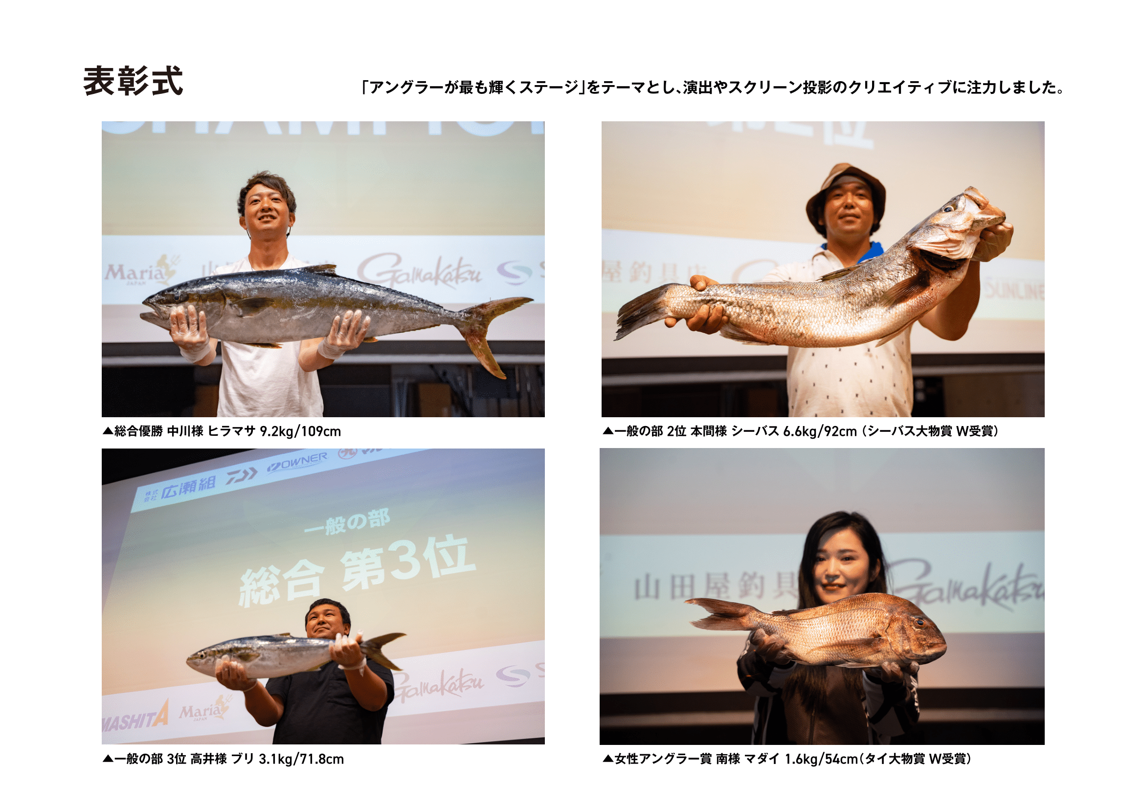 釣り上げた魚の重量を競う「総合部門」の他、各魚種別に部門賞を準備しております。