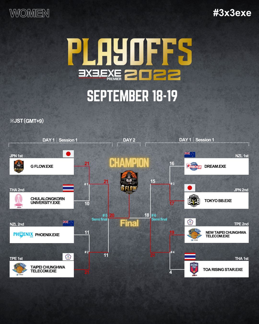 3人制バスケットボールのグローバルリーグ「3×3.EXE PREMIER」の2022シーズンにつきまして、男子79チーム・女子26チームによる4ヶ月にわたり開催されたレギュラーシーズン、そして2019年ぶりに海外のカンファレンスを含め開催されたPLAYOFFSの全日程を終え、男子はUTSUNOMIYA BREX.EXE、女子はG FLOW.EXEがシーズンチャンピオンに輝きましたので、お知らせいたします。