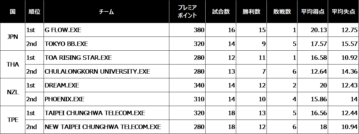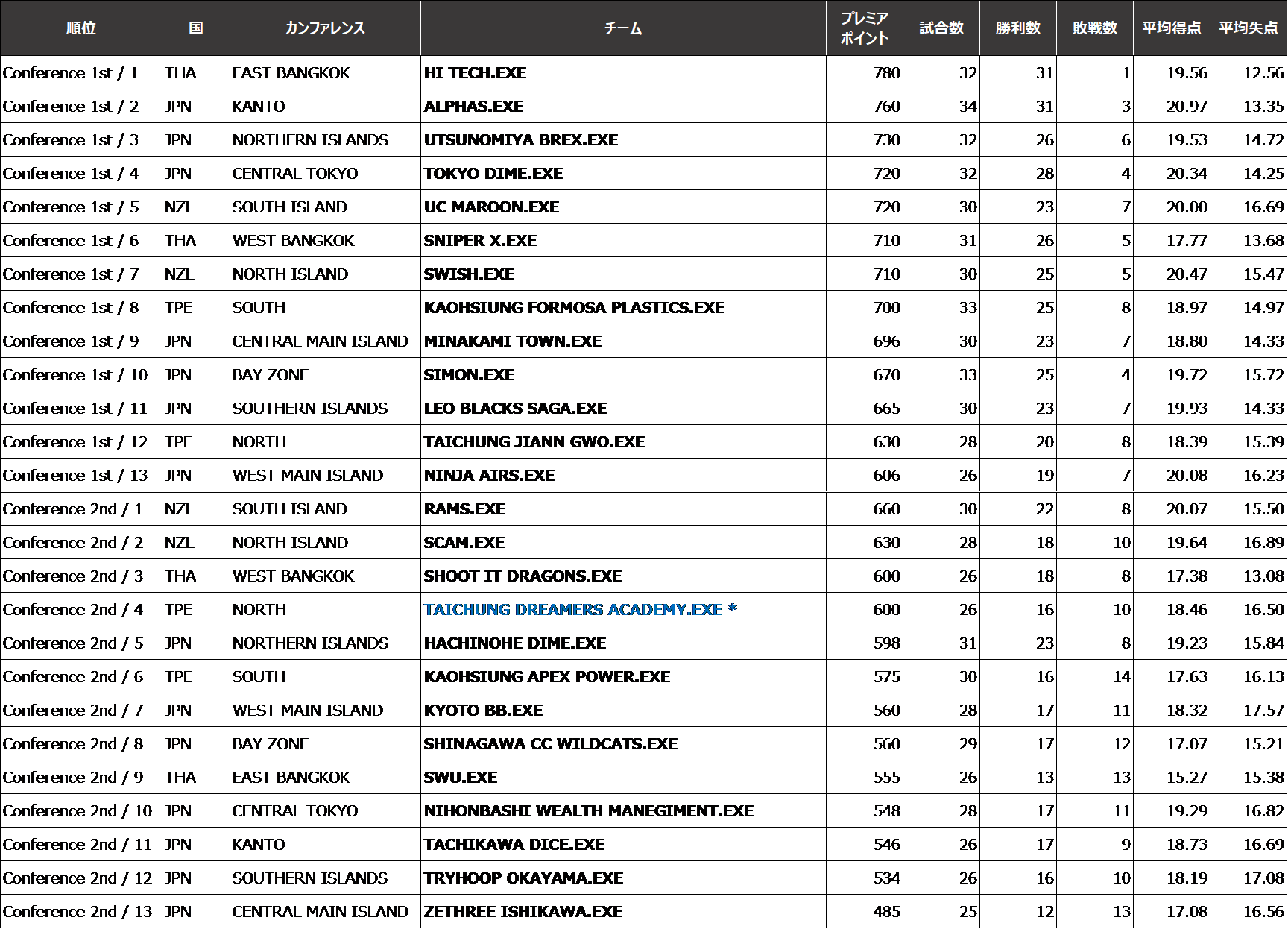 *チャイニーズタイペイのNORTHカンファレンスの2位は「TAIPEI AQUECARE.EXE」でしたが、