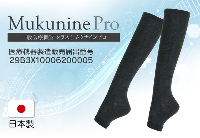 「一般医療機器サポーター ムクナインプロ」は優れた効果を持つ一般医療機器サポーターで、血行循環促進・むくみ軽減・リンパ液の促進と3つの効果・効能があります。日本製で品質と安全面にもこだわっています。
