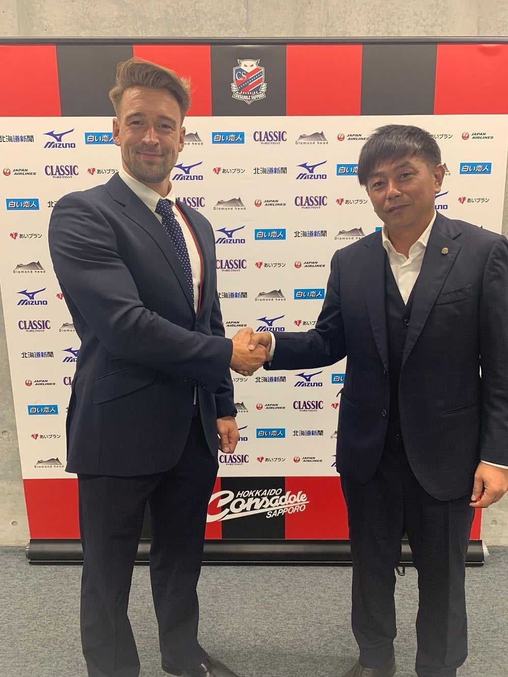 「コンサドーレのファン・サポーターの皆さん、こんにちは。レオファンリミテッドのショー ウォルビオフです。この度のコンサドーレとの契約を光栄に思います。我々レオファンリミテッドは、ジブラルタル国に本社を置く無料版オンラインゲームサービスの運営や開発を行う企業です。この度、コンサドーレが「北海道とともに、世界へ」というスローガンのもと「北海道をより豊かに元気にしたい」というクラブの思いに賛同し、少しでもそのサポートができればと思い、今回パートナーシップを結ばせていただくことになりました。コンサドーレサポーターの皆さん,これからよろしくお願いいたします。」
