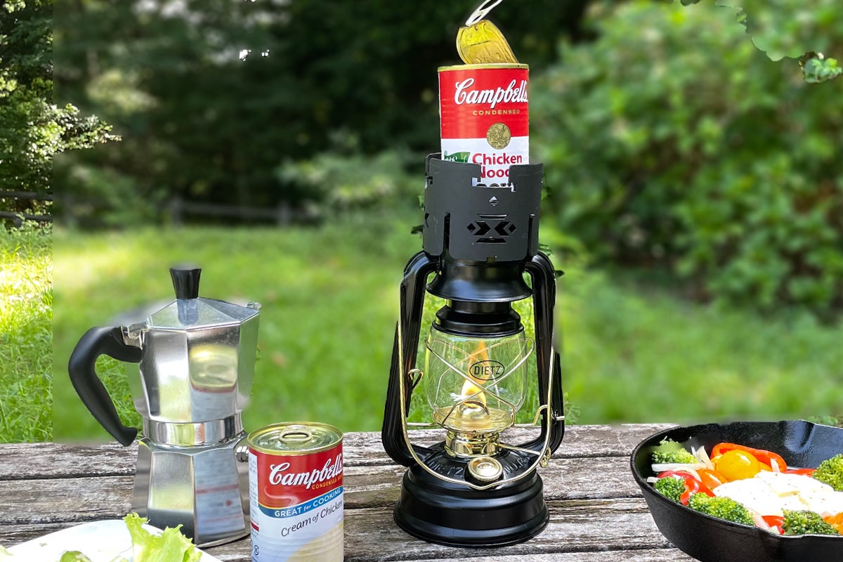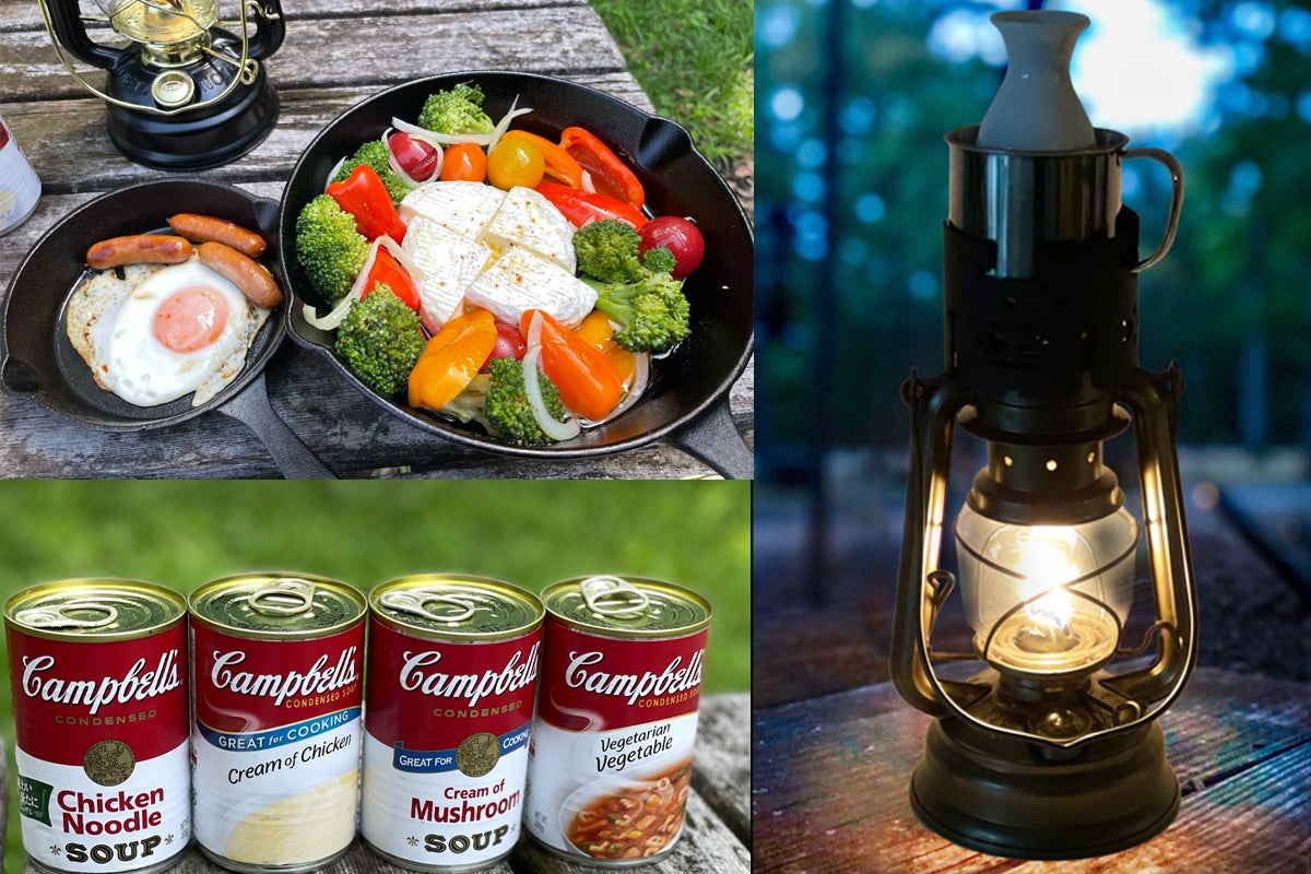 ランタンを灯したら、ランタンの上で調理を開始。缶詰を温めたり、熱燗をゆっくりと楽しむのにもいい。