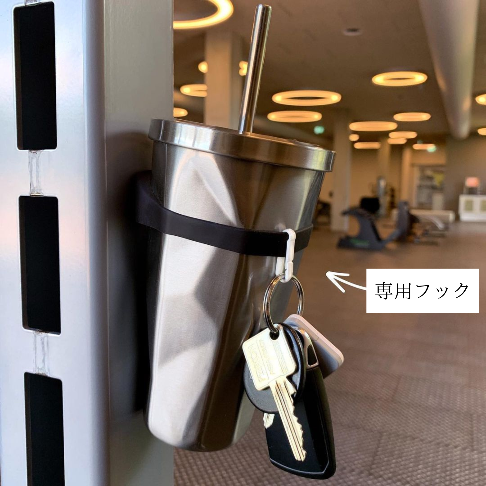 - スポーツジムのトレーニングマシンに装着できる。マグネット式のドリンクホルダー!