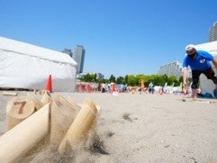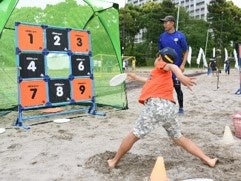 今年の参加競技団体数は、前回開催時より大幅に増え【16種類】のビーチ・マリンスポーツがいなげの浜に集結します。「ソーシャルディスタンススポーツ」として話題を呼んだ「フレスコボール」では、本場ブラジルで開催される選手権の出場枠を決める大会が開催され、近年「エクストリームスポーツ」として人気絶頂の「スラックライン」や国内トップ選手が集う「ビーチテニス」等の白熱した試合を間近で観戦・体験する事が出来ます。その他、話題沸騰中の競技「モルック」や「ラウンドネット」、老若男女だれでもが楽しむことのできる「ビーサン跳ばし」といった競技も無料で体験が出来ます。「ビーチウッドボール」では、地元自治会大会が開催され、地域一体となった日本最大級のビーチ・マリンスポーツの大型イベントとなります。