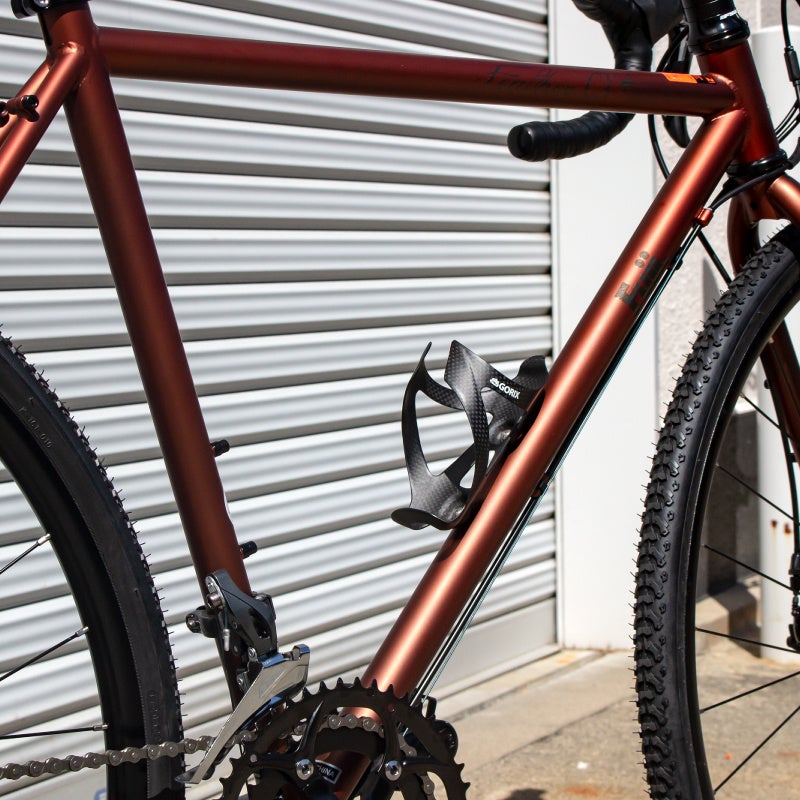 スポーティーで高級な印象を与えるカーボンボトルケージはどんな自転車にもマッチします。