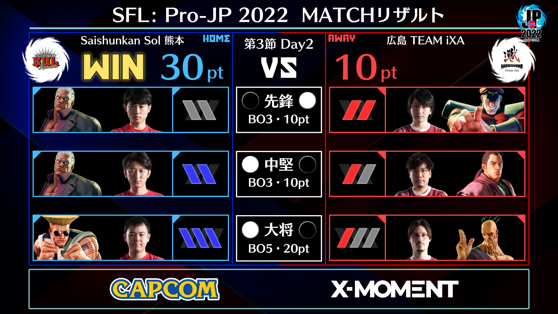 昨日、9月27日(火)に行われた「ストリートファイターリーグ: Pro-JP 2022」第3節Day2の試合速報をお知らせいたします。