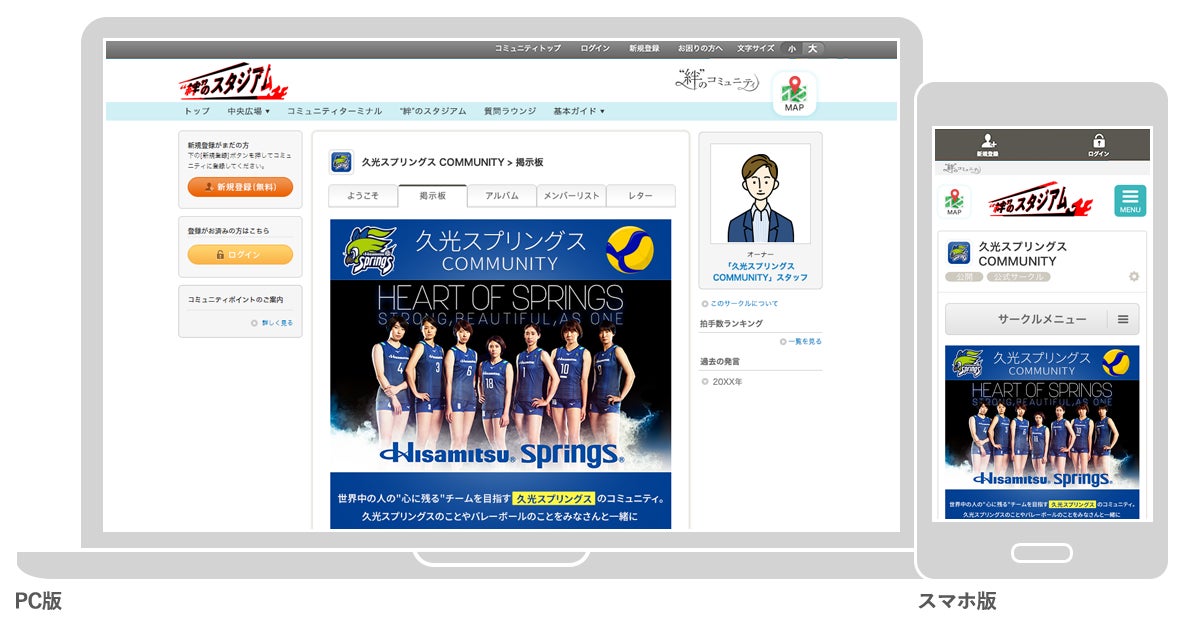 「久光スプリングス COMMUNITY」は、「久光スプリングス」を応援する人々が集うコミュニティです。チームのファンはもちろん、地元のスポーツチームを応援したいという想いを持つ方々が、「久光スプリングス」を好きな理由や試合の見どころ、選手への応援メッセージなどを自由に語り合うことができます。