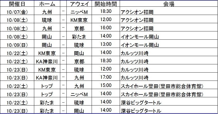 ■ ノジマTリーグ 2022-2023シーズン 2022年10月日程