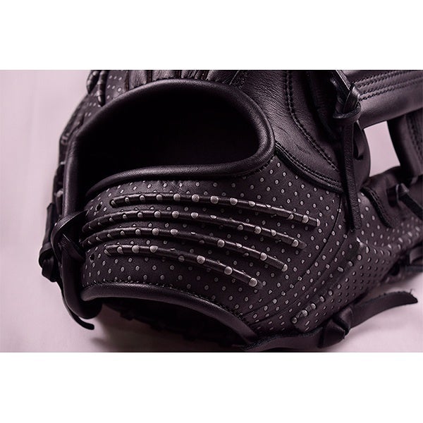 グラブの硬度を上げたことで指の力がグラブに伝わりやすくなり、ボールをよりがっちり掴めるようサポートします。