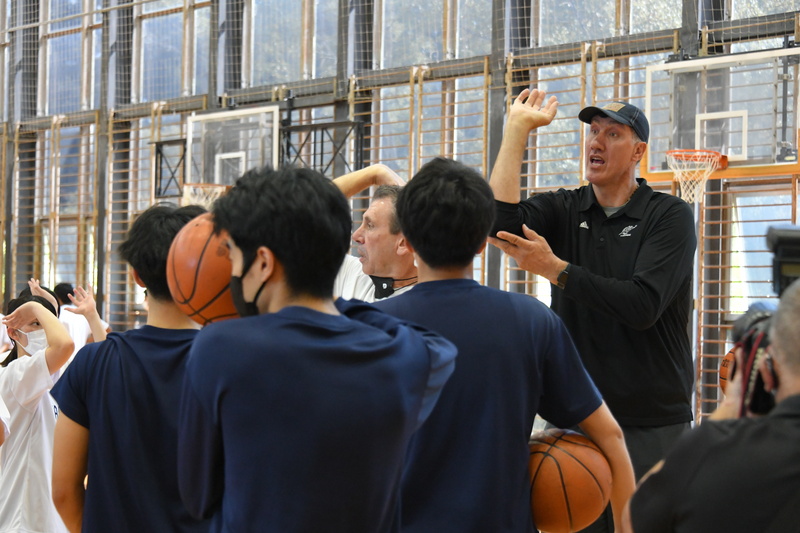 指導を受けた男子バスケットボール部・キャプテンの大河内輝和さん(高2)は「声を出してのトレーニングを教わるなど貴重な体験ができました。チームワークが深まり、バスケットボールがさらに好きになりました」と話しました。