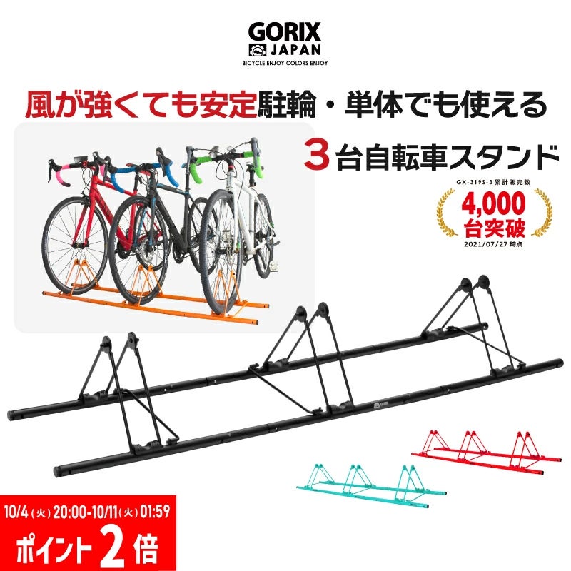 簡単組立!使わない時は小さくたためる3台自転車スタンド GX-319S-3