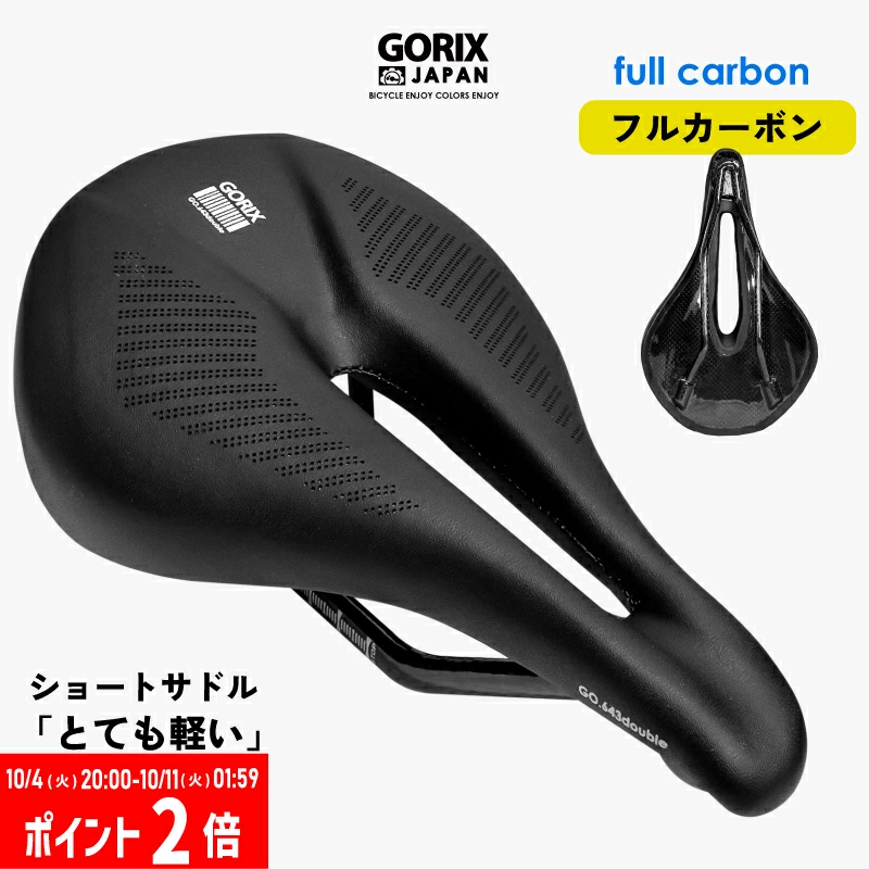 重さ約138gで軽量&衝撃吸収に優れたフルカーボンのショートサドル GO.643double